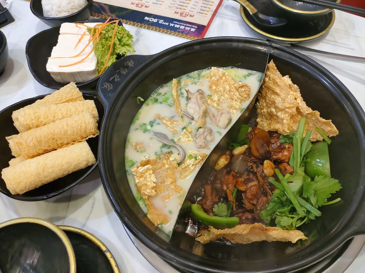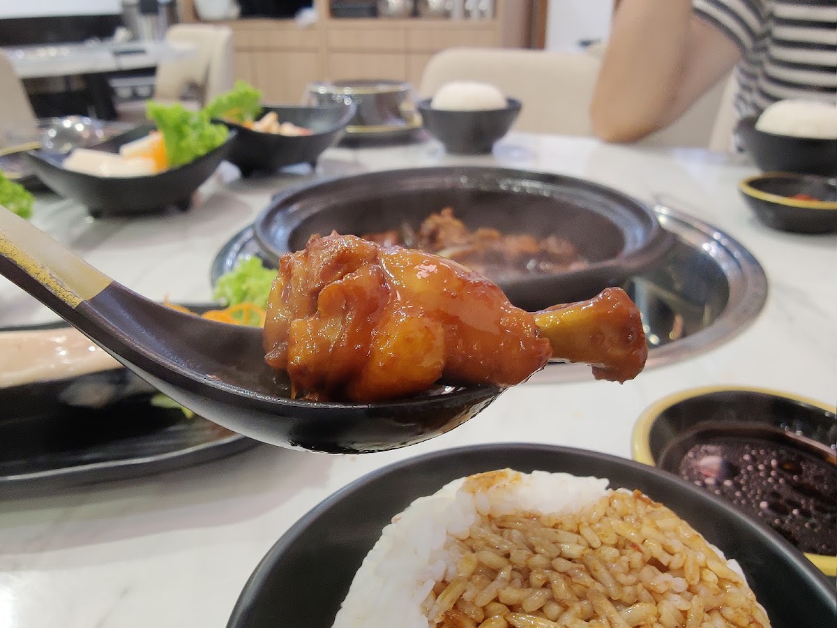 We ordered a small signature claypot chicken to share, it was good for 3 of us. We also opted to add on the herbal broth and ordered some ala carte steamboat ingredients to add on. The claypot was delicious and if we werent having the steamboat after, I would have wished we ordered the large version instead. The herbal broth was great too! All 3 of us enjoyed the meal! Definitely coming back if we're in the area.